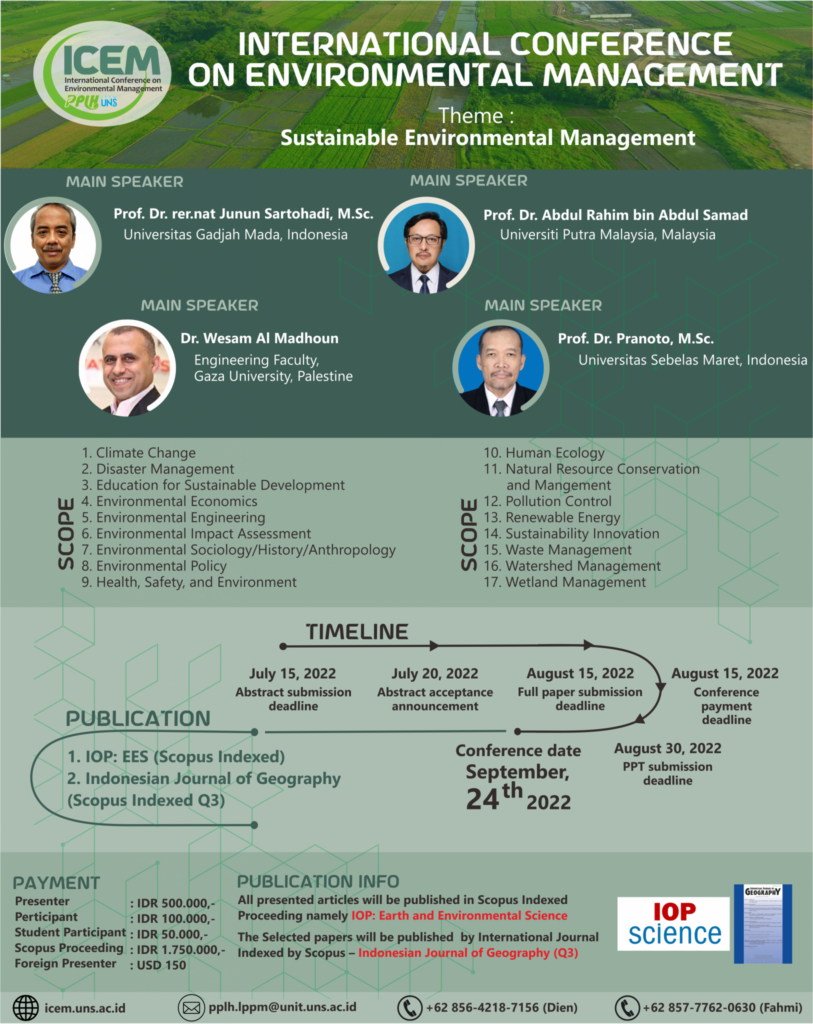 Welcome to the Third International Conference on Environmental Management (ICEM 3rd). The main theme of this year is “Water Security in a Changing Climate: Scaling Nature-Based Solutions.”
